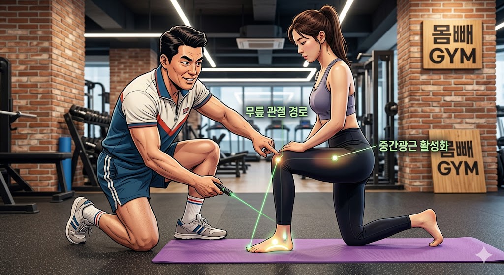 오늘은 몸빼관장이 이 어긋난 무릎 경로를 꽉! 잡아주는 핵심 비법을 전수해 드립니다. 딱 두 가지만 기억하세요. 슬와근과 중간광근!