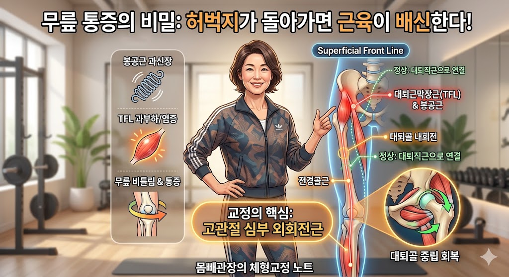 무릎 통증의 비밀: 허벅지가 안으로 돌아가면 생기는 일 (대퇴골 내회전과 근육의 배신)