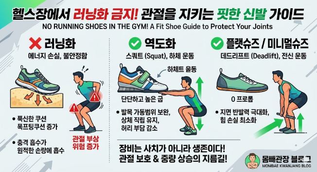 ### 1. 러닝화가 웨이트에 부적합한 이유: '쿠션'의 역설