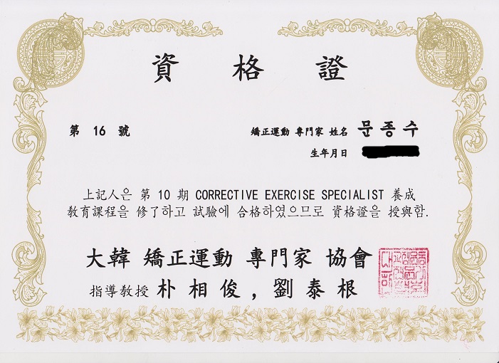 대한 교정운동 전문가 교육 이수